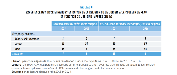 « En pratique, ces résultats montrent une double vulnérabilité : les personnes concernées subissent simultanément une stigmatisation liée à leur appartenance religieuse et à leur origine perçue. Ils mettent aussi en évidence l’importance des assignations identitaires, en fonction de la couleur de peau, de l’origine ou encore de l’expérience migratoire, comme sources de discriminations en raison de la religion. »