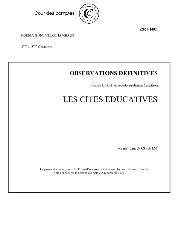 La Cour des comptes reconnaît l’intérêt de la démarche pour favoriser les coopérations locales et intégrer l’éducation nationale dans l’écosystème du quartier. Elle note cependant que cette alliance repose en grande partie sur l’implication des acteurs locaux, qui sont face à la difficulté d’articuler un écosystème très complexe. Elle remarque également que le système de dotations pourrait être amélioré et les évaluations mieux exploitées.