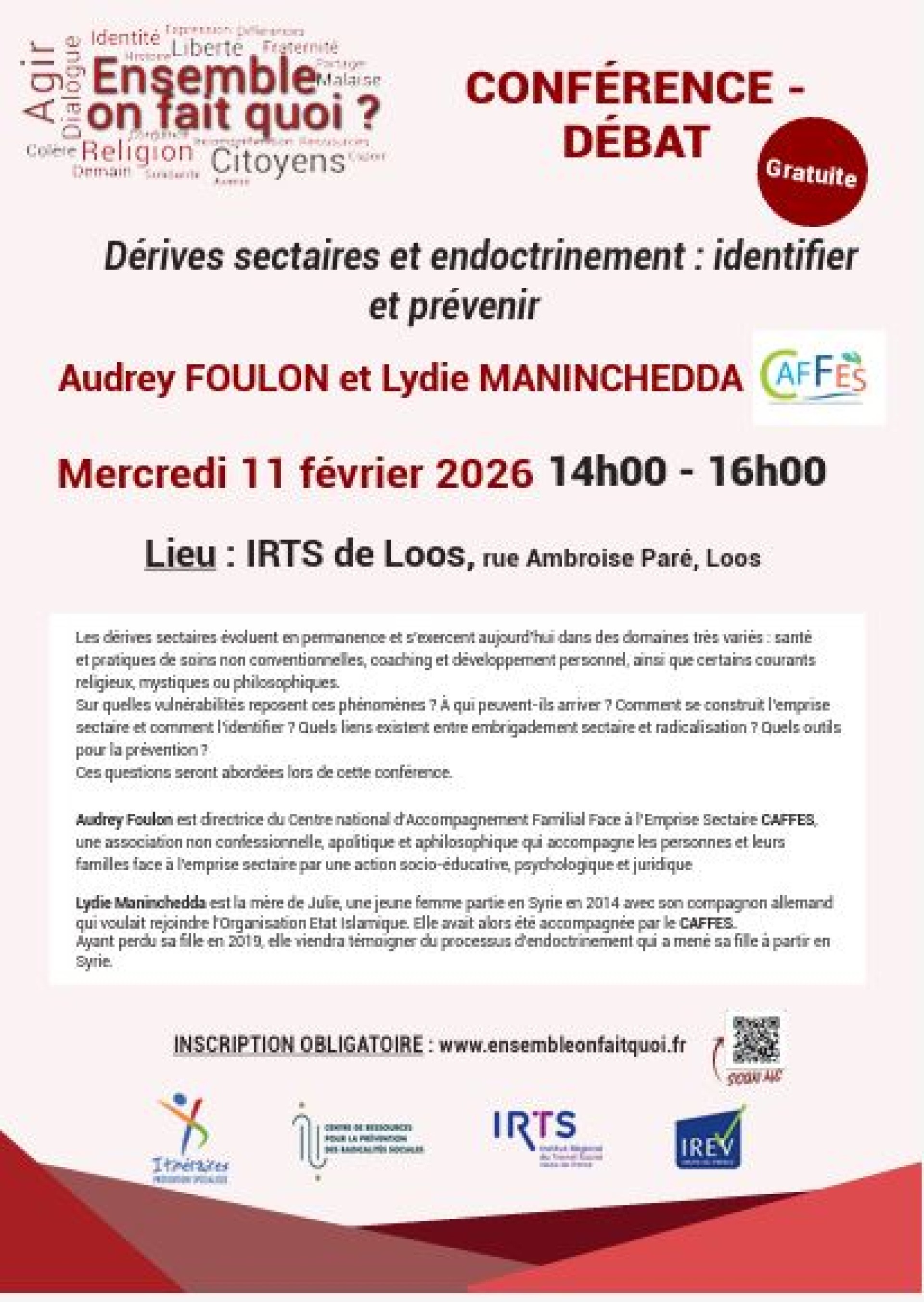 Audrey FOULON est directrice du Centre national d’Accompagnement Familial Face à l’Emprise Sectaire (CAFFES), une association non confessionnelle, apolitique et aphilosophique qui accompagne les personnes et leurs familles face à l’emprise sectaire par une action socio-éducative, psychologique et juridique.