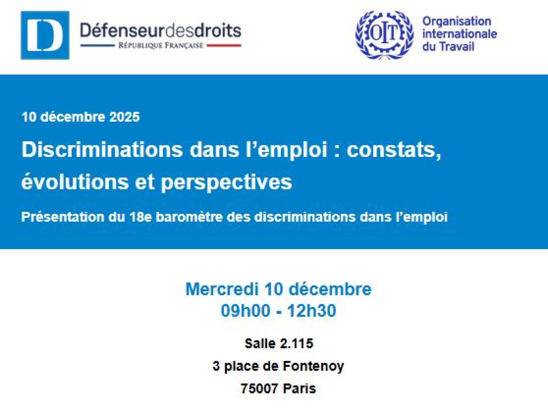 Pour aborder l’ensemble de ces enjeux et questionner les avancées des politiques d’égalité dans l’emploi, Claire Hédon, Défenseure des droits, et Cyril Cosme, Directeur du Bureau de l’Organisation internationale du travail pour la France, réuniront experts, chercheurs, partenaires sociaux et acteurs publics pour un temps d’échange le 10 décembre 2025.