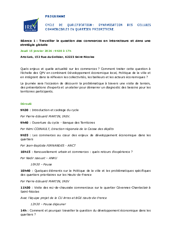 Inscriptions : https://www.irev.fr/inscription-cycle-dynamisation-des-rez-de-chaussee-commerciaux-en-qpv